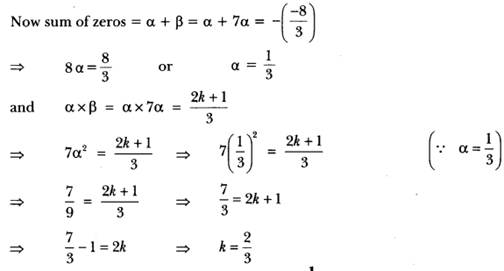 1. Let α and β be the zeros of the polynomial. Then as per question β = 7α