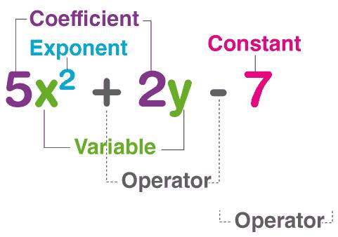 4. Polynomials are algebraic expressions that consist of variables and coefficients. Variables are also sometimes called indeterminates. We can perform arithmetic operations such as addition, subtraction, multiplication and also positive integer exponents for polynomial expressions but not division by variable. An example of a polynomial with one variable is x2 + x – 12. In this example, there are three terms: x2, x and -12.