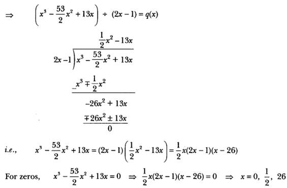∴ p(2) = (2)3 – 4(2)2 + 5(2) – 2 = 8 – 16 + 10 – 2 = 0